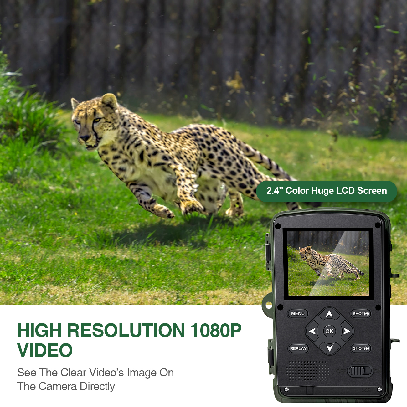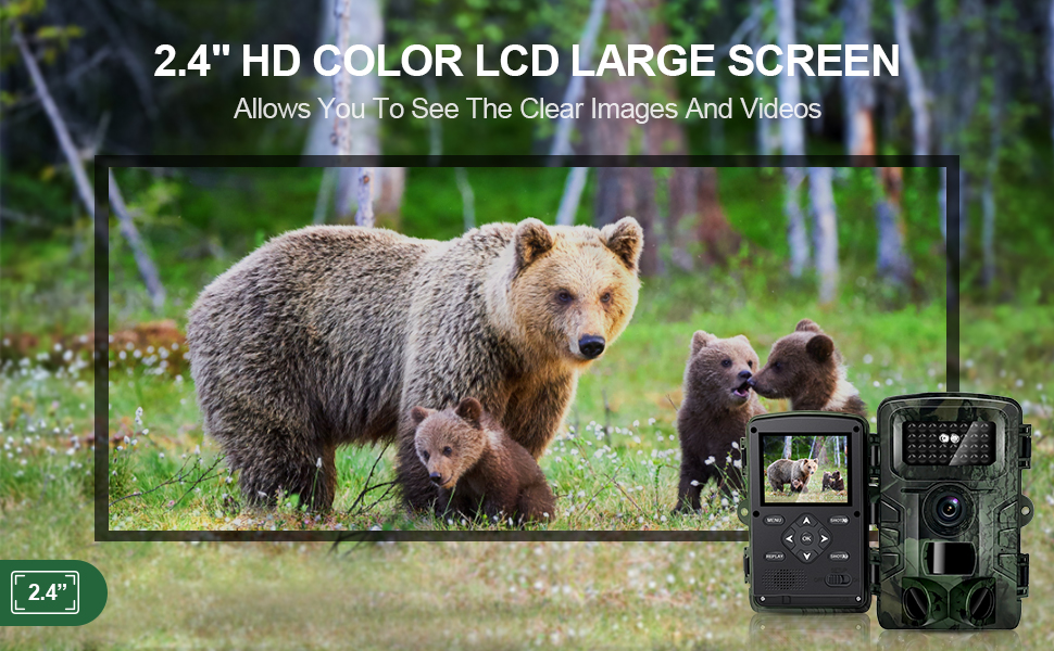 [HAZA's Neue Version der Wildkamera]- Hat eine ultra hohe Auflösung, welche atemberaubende, lebendige Videobilder liefert. Mit dem integrierten 2.4-Zoll LCD-Farbbildschirm, Somit können Sie mehr über die Geheimnisse der Tiere lernen, sei es bei Tag (Farbe) oder bei Nacht (Schwarzweiß). Die Kamera kann sowohl für die Beobachtung von Wild, für die Jagd, für die Sicherheit von Grundstücken und Häusern, als auch für die Fernüberwachung von landwirtschaftlichen Flächen und Ernten verwendet werden.