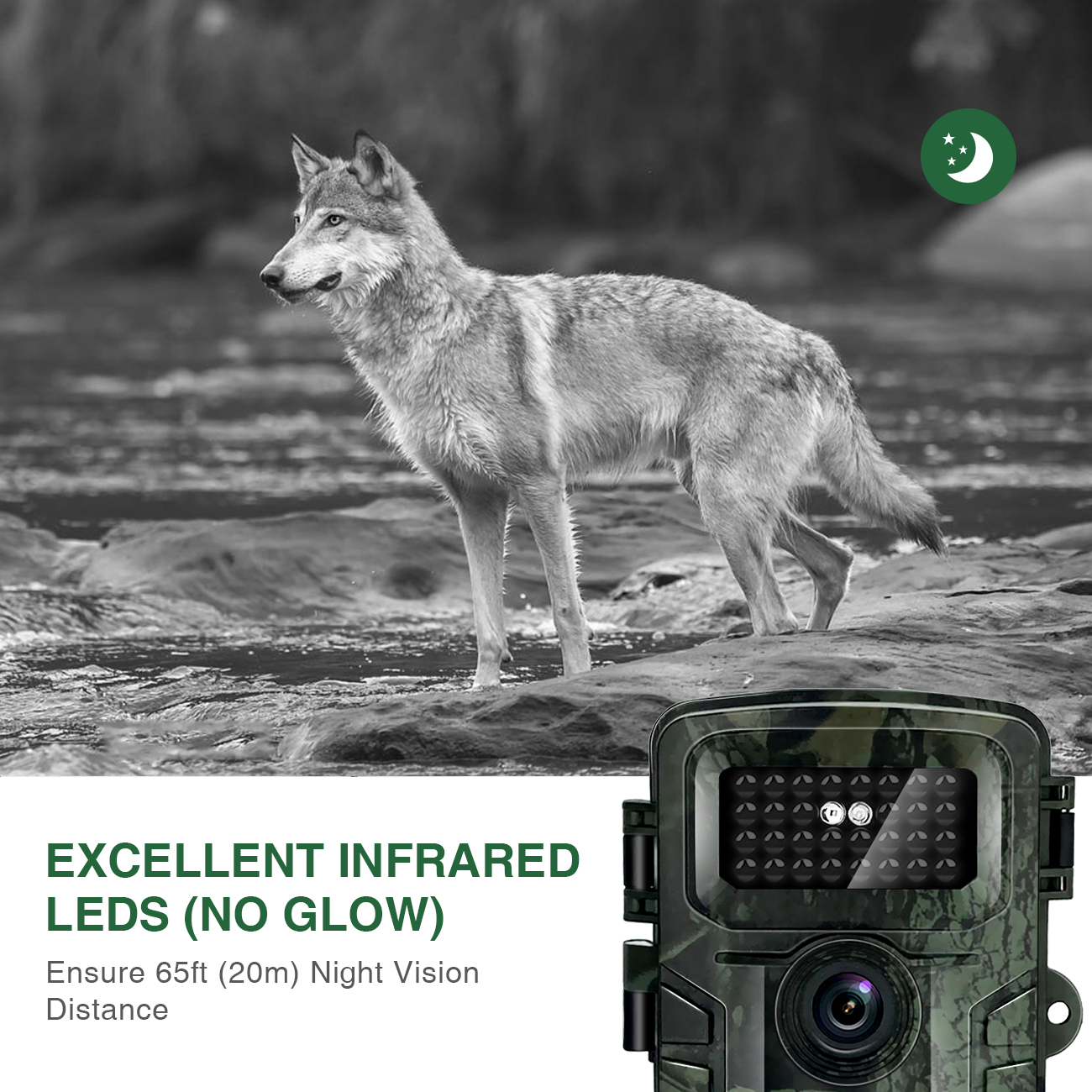 [Hervorragende Nachtsicht & 34 nicht leuchtende Infrarot-LEDs] - Ausgestattet mit 34 nicht leuchtenden 940-nm-Infrarot-LEDs ist sie leicht zu verstecken. HAZA Wildkamera stört das Wild auch in der Dunkelheit nicht. Die Reichweite der Nachtsichtaufnahmen liegt bei 20m. HAZA bringt einen speziellen Bewegungssensor mit picks up a special motion activated sensor und liefert die hellsten und klarsten Nachtbilder auf dem Markt.